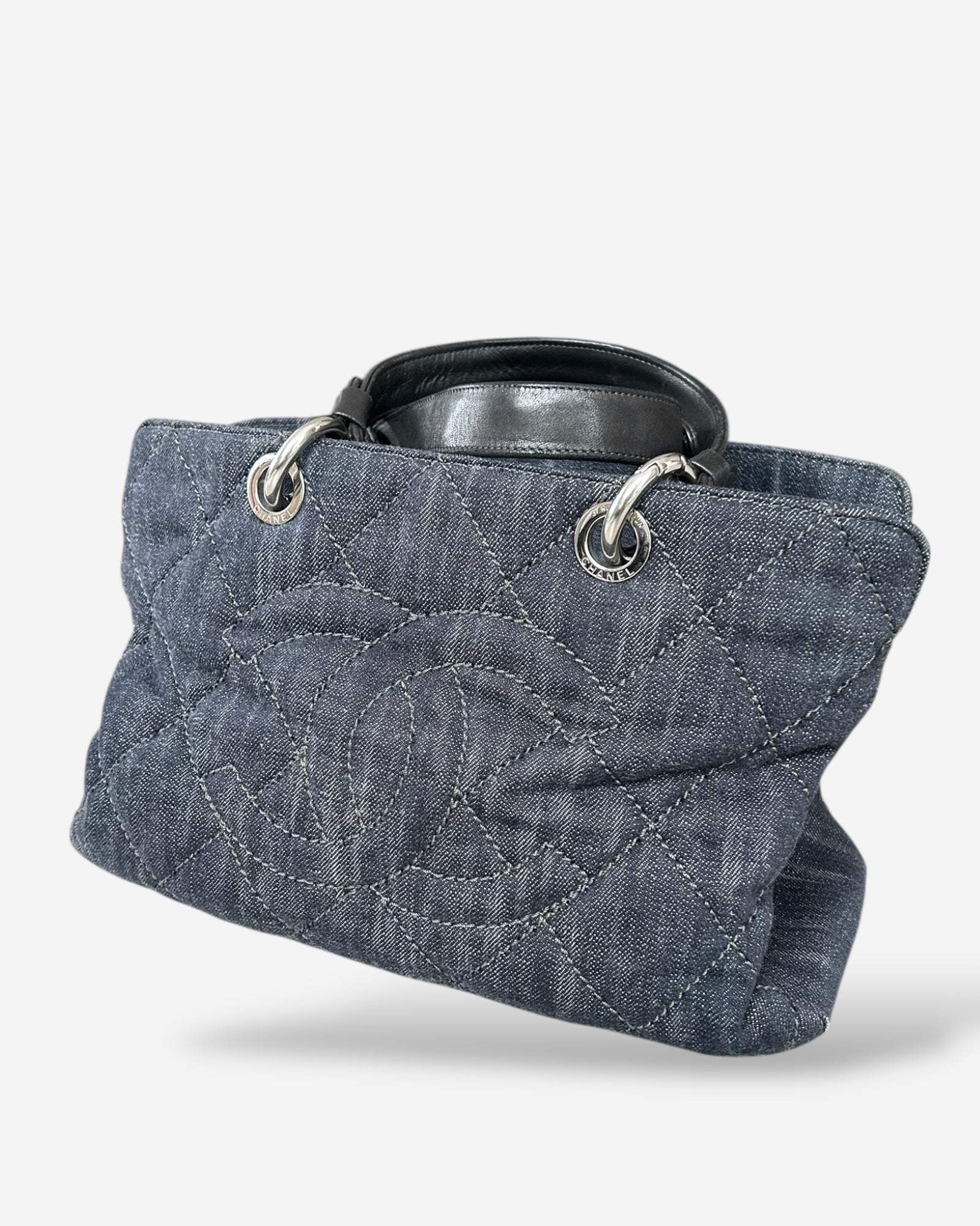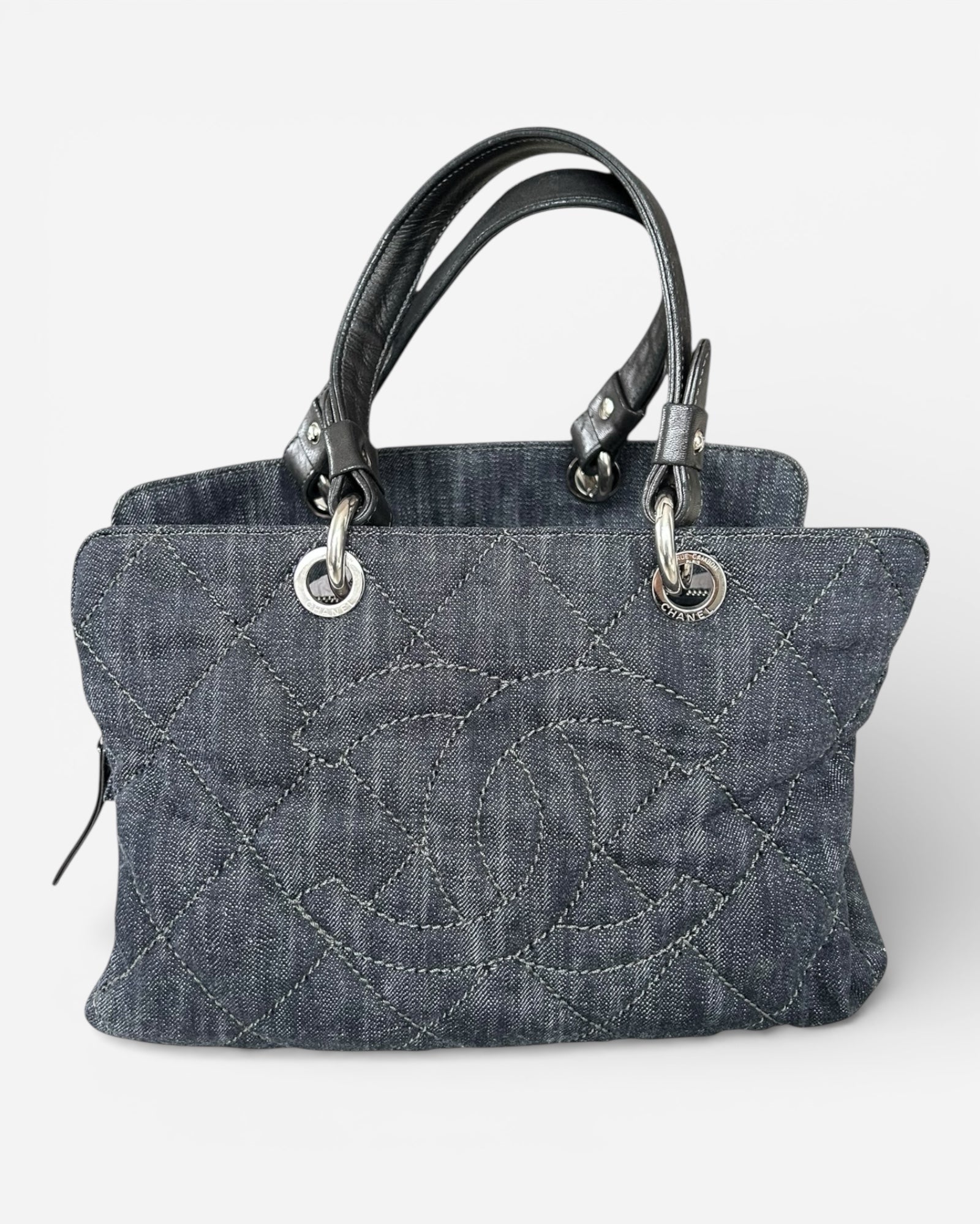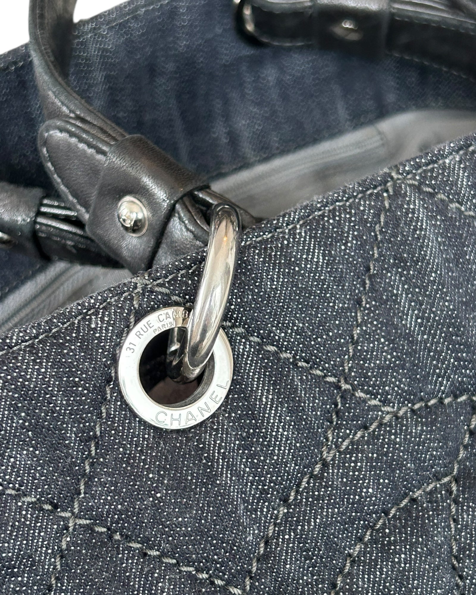 Pre-loved Chanel Quilted Denim Tote – Blue with Leather Handles