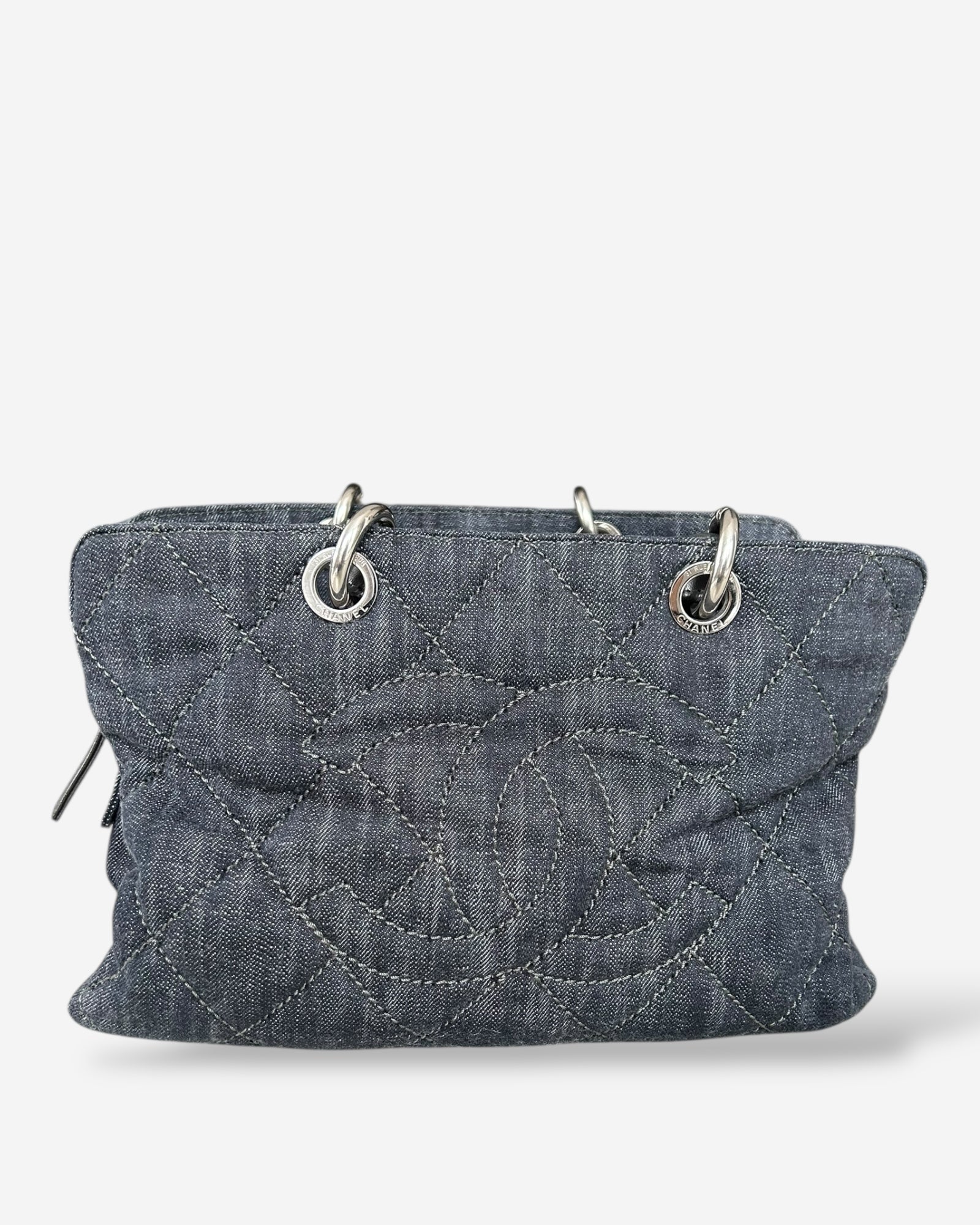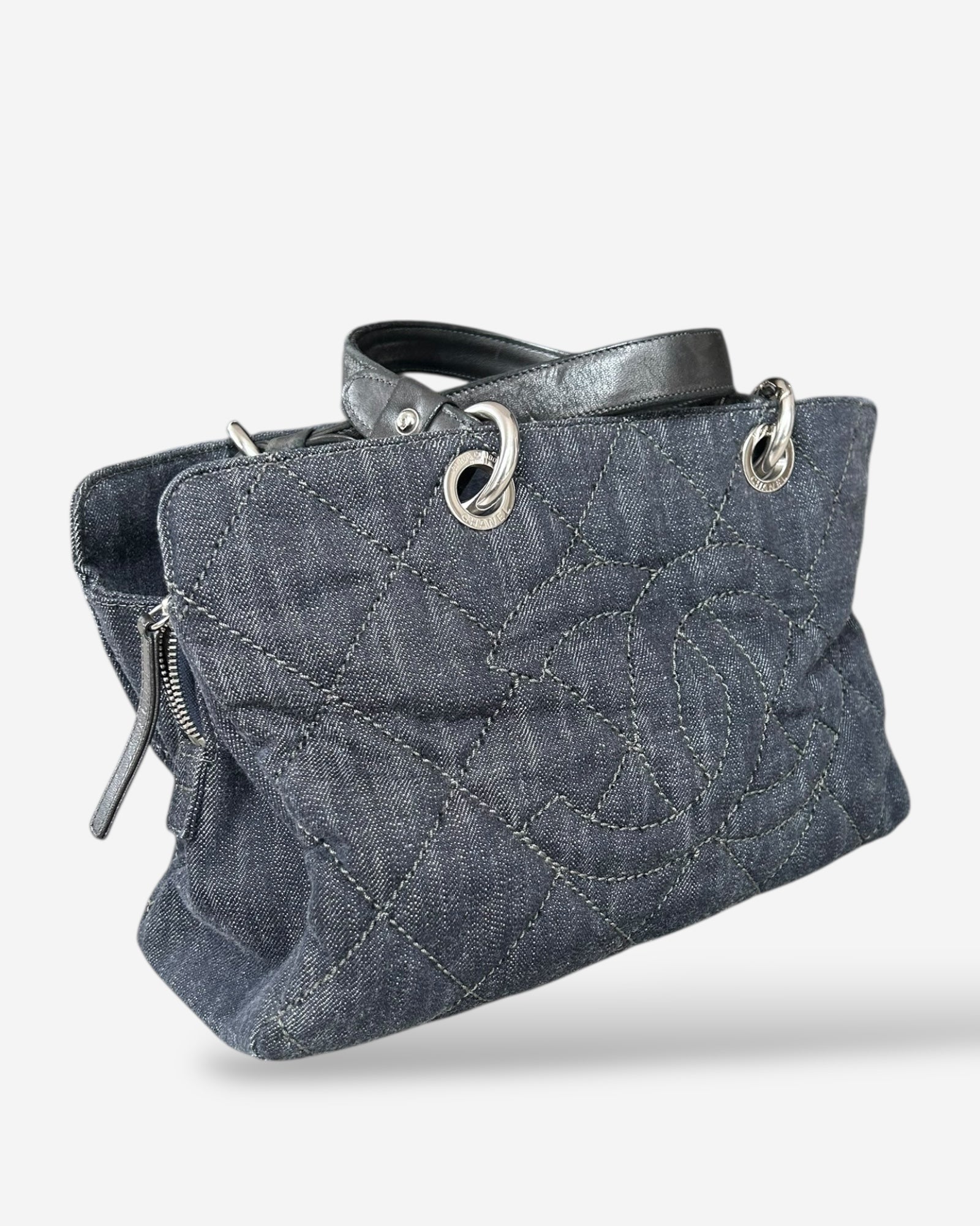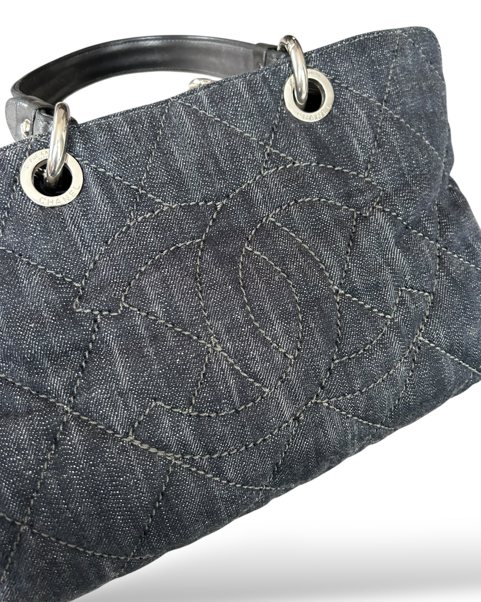 Pre-loved Chanel Quilted Denim Tote – Blue with Leather Handles