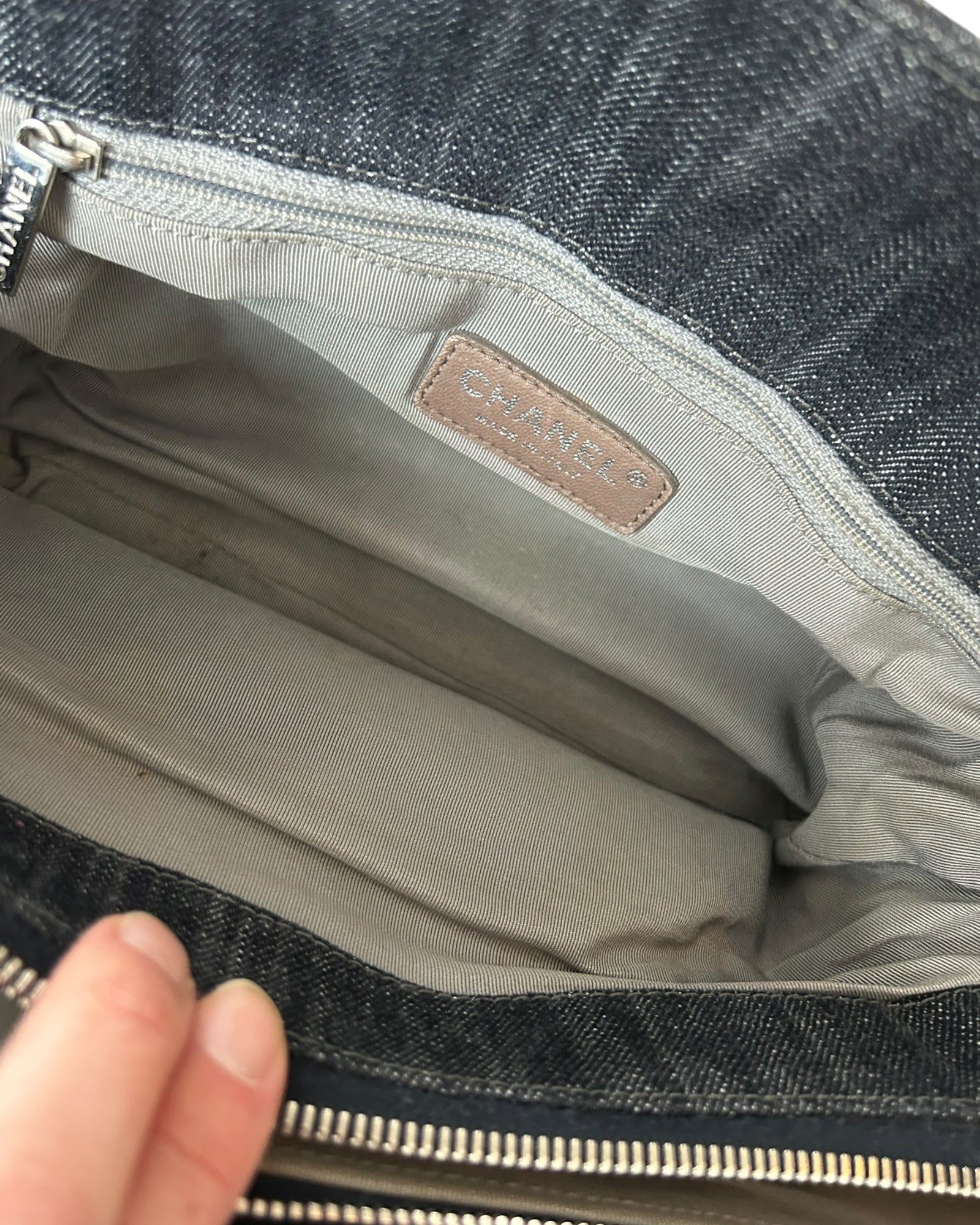 Please note this is a previously pre-loved item. Imperfections are a unique aspect of vintage bags. This Chanel denim tote is in very good condition with clean exterior fabric and sturdy handles. There is one small mark inside the lining.