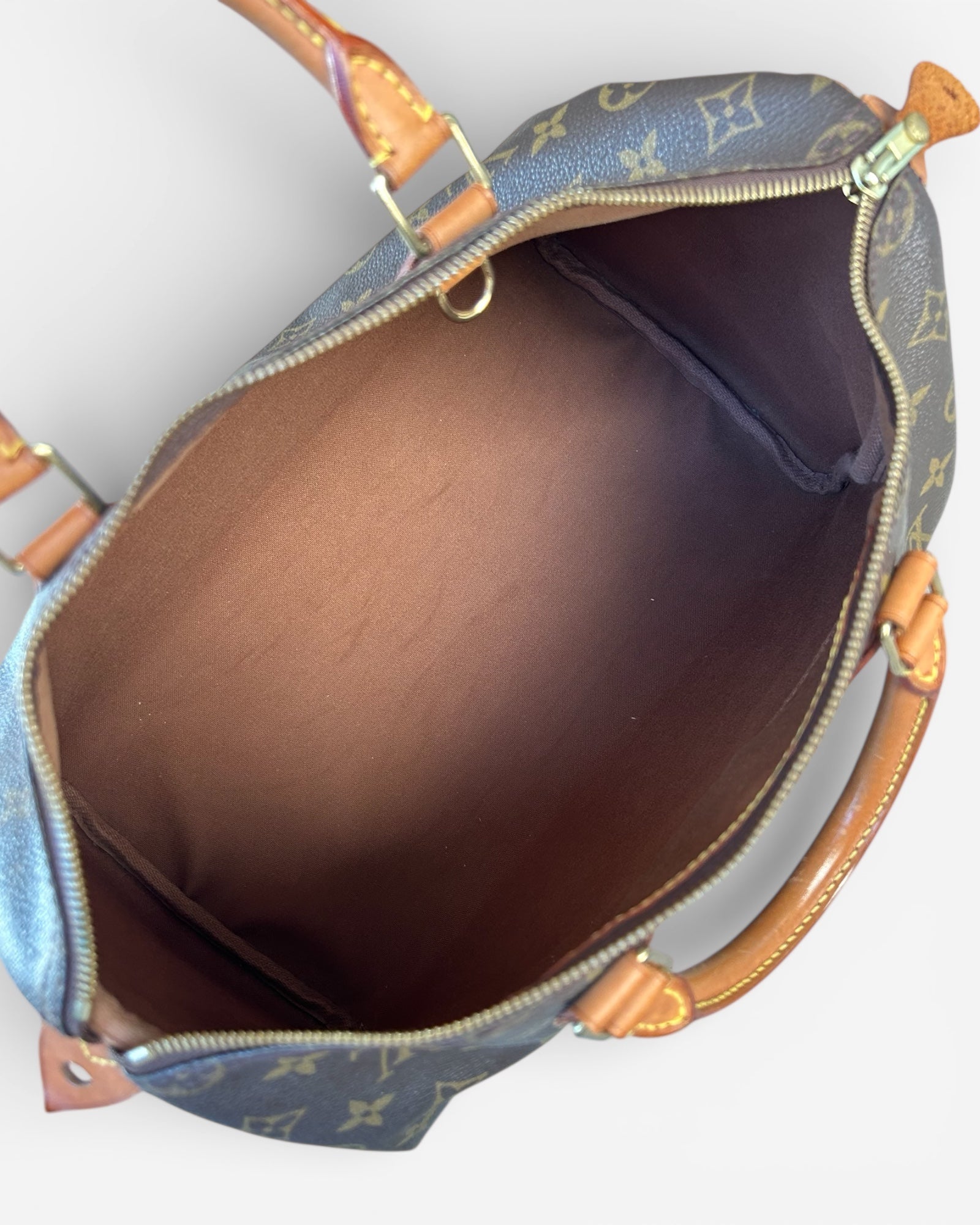 Lightweight yet spacious, the Speedy 35 is ideal for work, weekends, or travel. The top zipper opens to a roomy interior lined in brown canvas, with one slip pocket for smaller essentials. Elegant, classic, and endlessly wearable — this is luxury that never goes out of style.