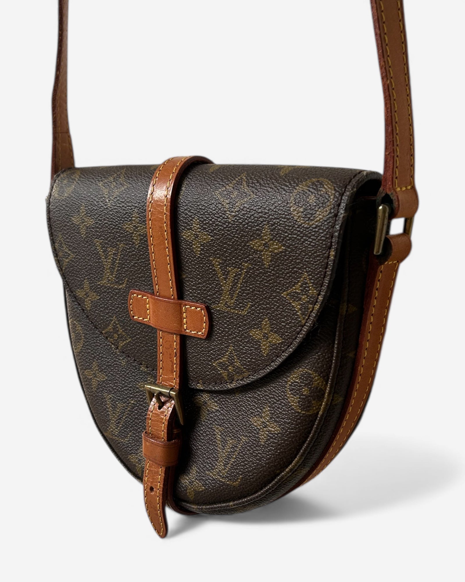 The Louis Vuitton Chantilly PM is a timeless vintage crossbody bag designed for effortless everyday elegance. Crafted from signature Monogram canvas with natural Vachetta leather trim and gold-tone hardware, this charming saddle-shaped bag offers a compact yet practical silhouette.